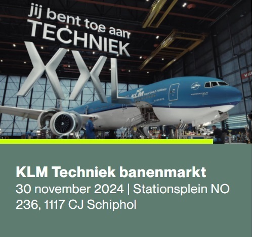 Op 30 november vindt op Schiphol de KLM Techniek Banenmarkt plaats. Ben jij op zoek naar een carrière in de techniek? Kom dan vrijblijvend kennismaken met recruiters, techneuten en managers. Stel vragen die jou helpen om te solliciteren op een baan in de techniek óf laat direct een cv achter met een open sollicitatie. Meer informatie en aanmelden kan hier.